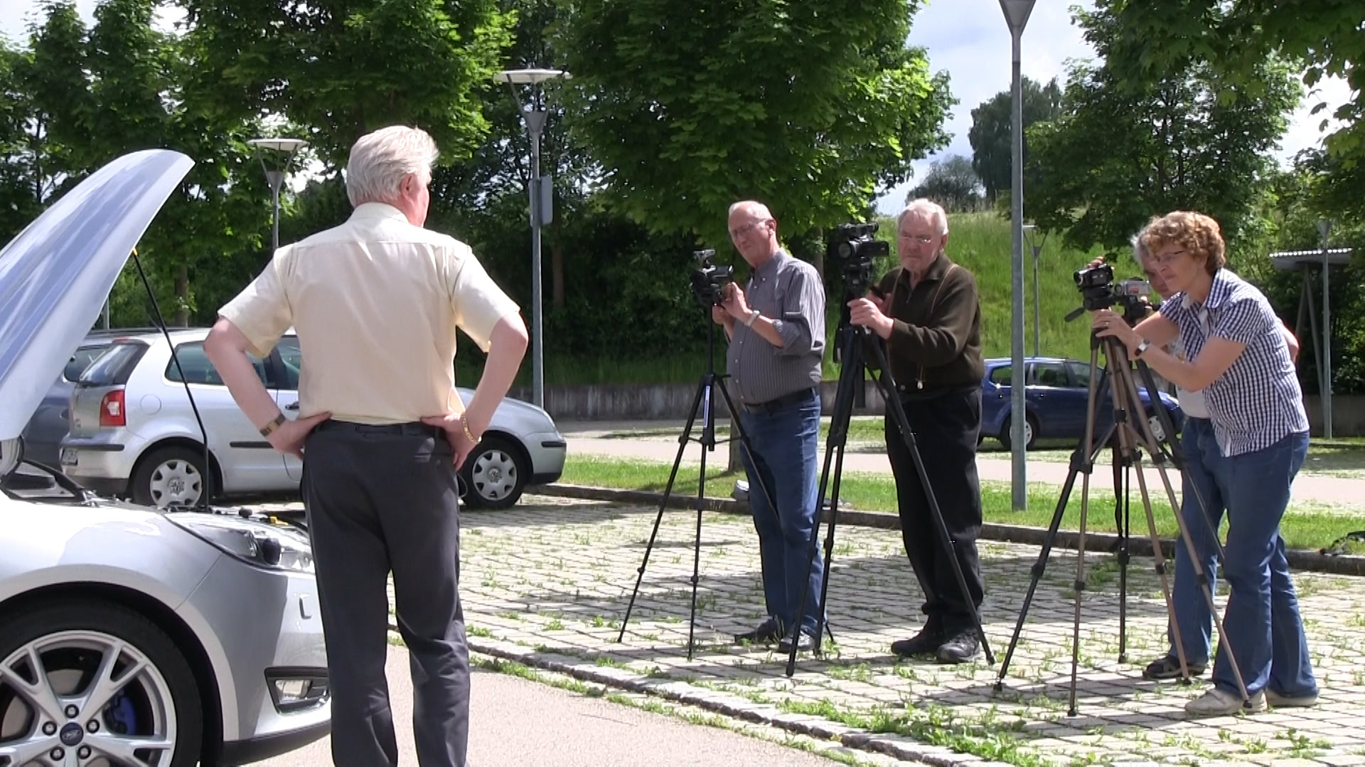 Als Produkt hatten wir einen Ford Focus und dieser wurde von seinem Besitzer ausführlich vorgestellt. Die Workshop-Teilnehmer mussten sich auf die jeweilige Situation einstellen und das Erklärte in Bild und Ton einfangen. Einige Szenen wurden mehrmals wiederholt - aber das gehört dazu.