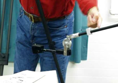 Ein praktisches Schulterstativ, wird am Hosengürtel im Rückenbereich für besseren Halt eingehakt (Marke Eigenbau)