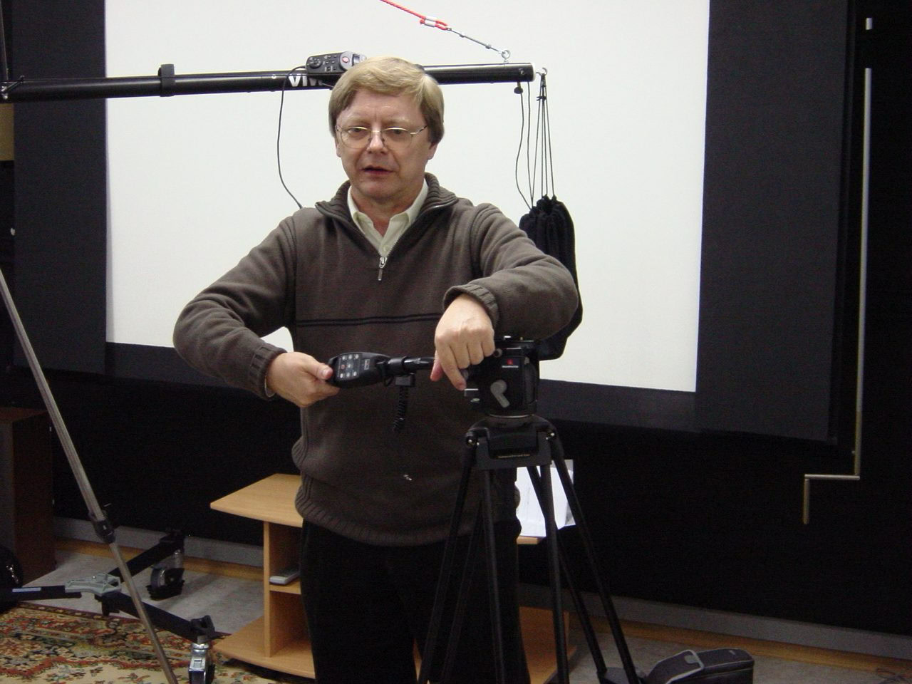 Die technischen Daten sind Hubhöhe bis zu 3,20, Stativhöhe bis zu 1,50m, Bildkontrolle übe einen externen Monitor und per Kabelfernbedienung ist die Kamera immer zoom bereit.