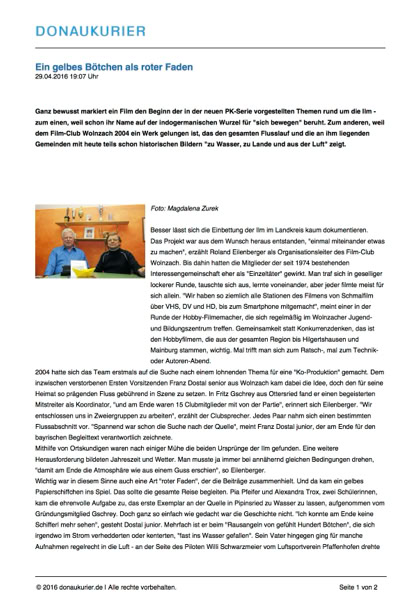 Unser Gemeinschaftsprojekt „Die Ilm - von der Quelle bis zur Mündung“ aus dem Jahre 2004, wurde nach 12 Jahren nochmals von der Redakteurin Magdalena Zurek DONAUKURIER für eine PK-Serie aufgegriffen.