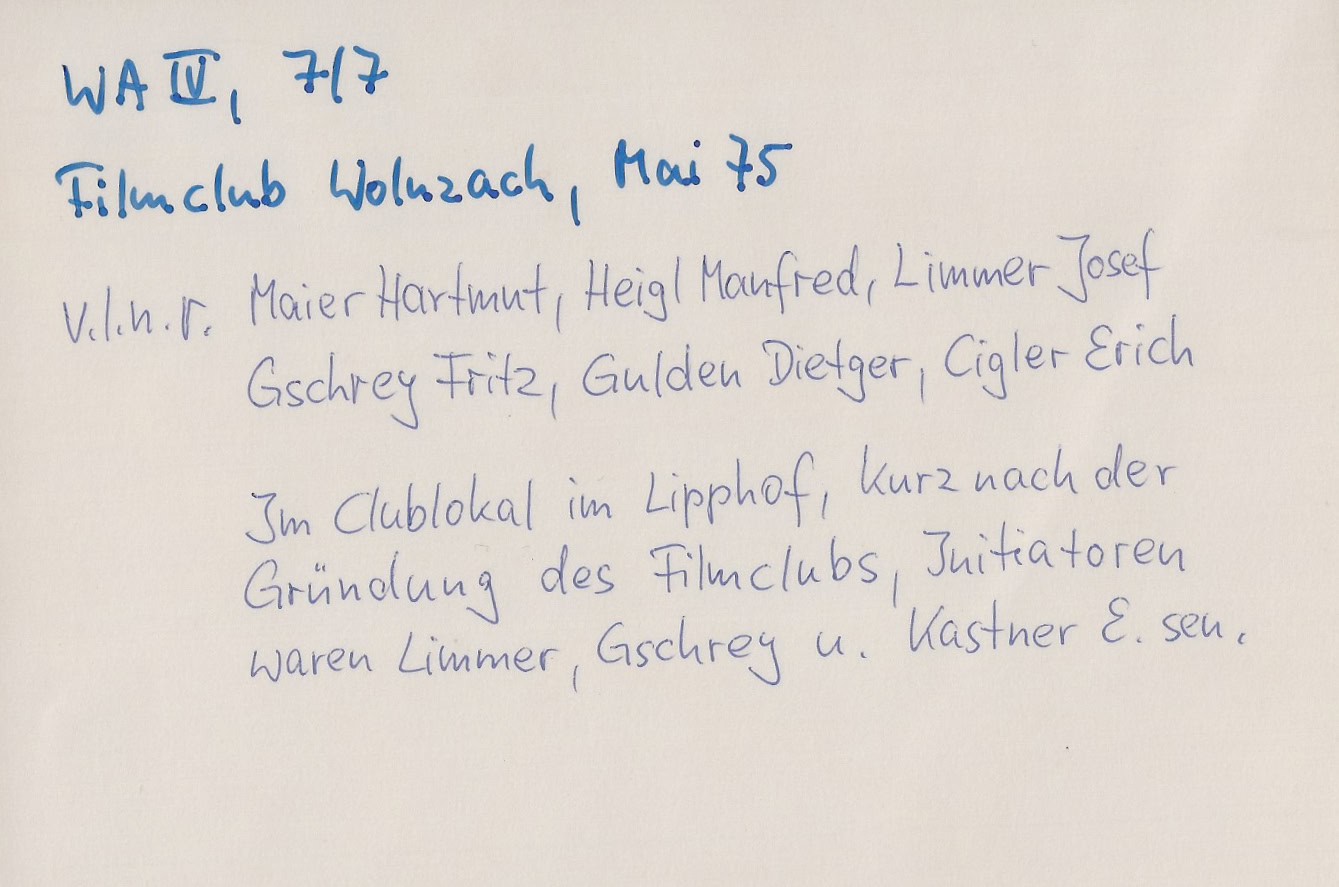 Der Film-Club Wolnzach wurde gegründet. Die Räumlichkeiten waren im alten Lipphof untergebracht.