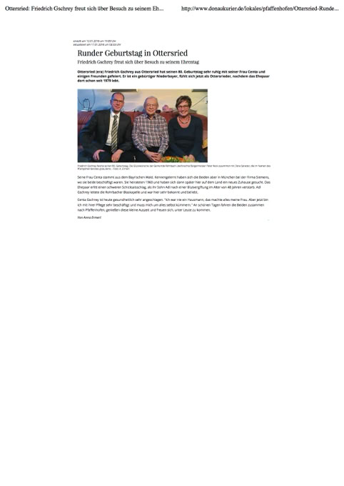 Unser Gründungsmitglied Fritz Gschrey hat seinen 80. Geburtstag gefeiert. Der Bürgermeister von Rohrbach Herr Peter Keck hat in Namen der Gemeinde die Glückwünsche überbracht.