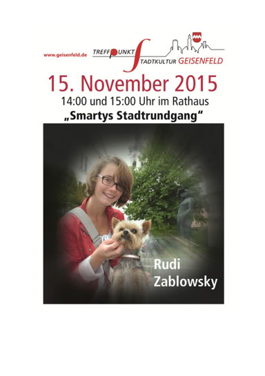 Für den Film mit dem Titel „Smartys Stadtrundgang“ hat Rudi Zablowsky den Yorkshire Terrier SMARTY mit seinem Frauchen VIKTORIA engagiert, die er zusammen auf Entdeckungstour durch Geisenfeld schickte und die eine etwas andere Stadtführung präsentierten.