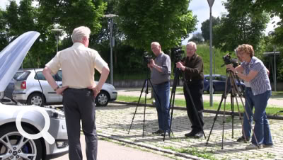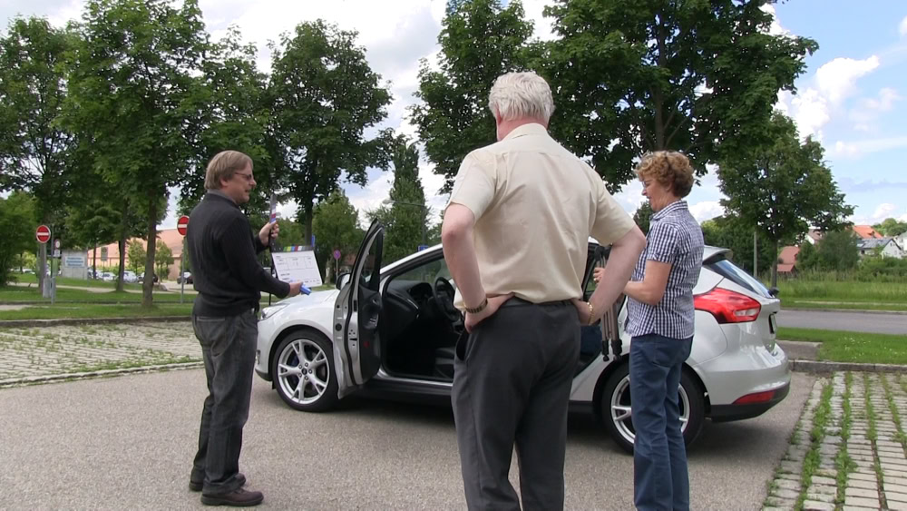 Als Produkt hatten wir einen Ford Focus und dieser wurde von seinem Besitzer ausführlich vorgestellt. Die Workshop-Teilnehmer mussten sich auf die jeweilige Situation einstellen und das Erklärte in Bild und Ton einfangen. Einige Szenen wurden mehrmals wiederholt - aber das gehört dazu.