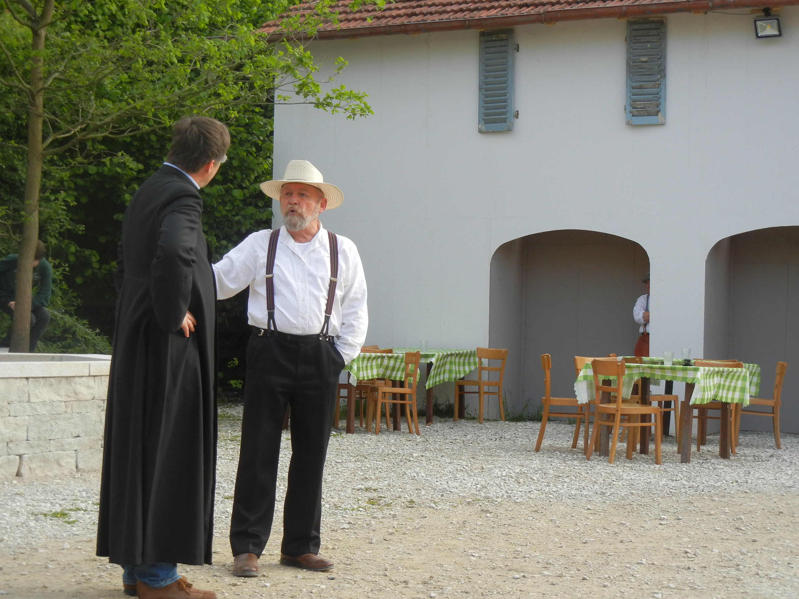 Die Aufgabe war nicht ganz so einfach. Der Kulissenbau und die Zuschauertribüne waren noch nicht abgeschlossen und die Technik war auch noch nicht aufgebaut. Schließlich gingen die ersten Freilichtproben über die Bühne (siehe Bilder unten). Das war für uns der richtige Zeitpunkt das Theaterstück näher kennen zu lernen. Man kann nichts filmen wenn man es nicht schon mal gesehen hat (es ist einfach leichter die Abläufe zu kennen).