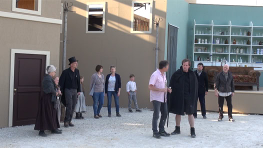 Schließlich nahmen wir Kontakt zum Vorstand auf und boten unsere Dienste an, dass wir ihre Arbeit wieder dokumentieren wollten. Das Ok vom Theaterverein kam recht schnell und wir konnten die ersten Proben auf dem Freilichtgelände miterleben. Der Kulissenbau und die Zuschauertribüne waren noch nicht abgeschlossen und die Technik war auch noch nicht aufgebaut. Schließlich gingen die ersten Freilichtproben über die Bühne (siehe Bilder unten). Das war für uns der richtige Zeitpunkt das Theaterstück näher kennen zu lernen. Man kann nichts filmen wenn man es nicht schon mal gesehen hat (es ist einfach leichter die Abläufe zu kennen).